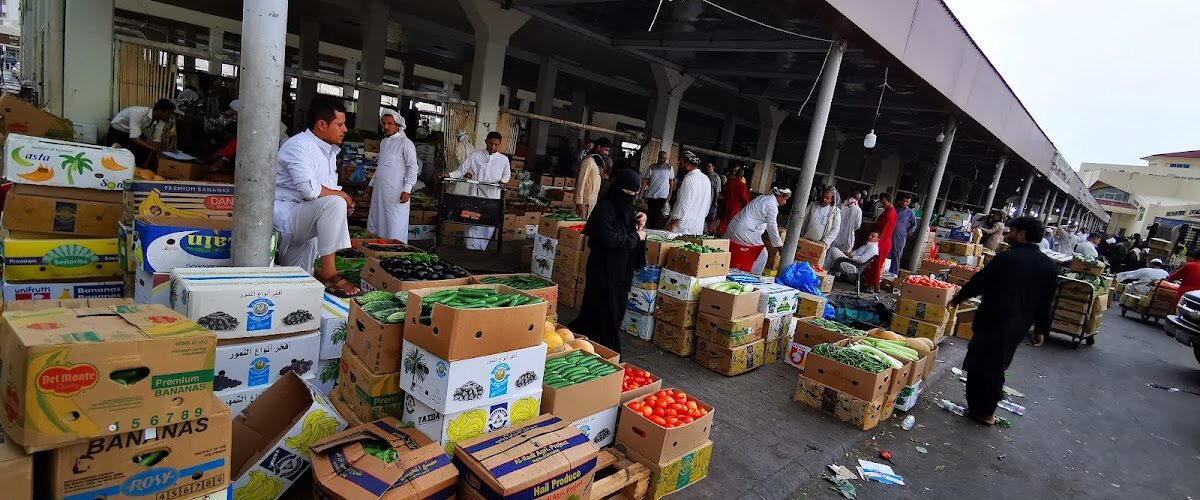 Grand marché en gros/détail de fruits et légumes frais. Les prix les plus bas de Médine. Ouvert presque 24h/24. Idéal pour les achats en gros pour les familles.
