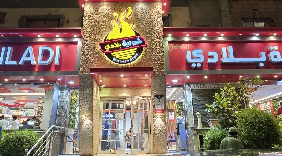 Poulet grillé au charbon style local. Riz bukhari savoureux. Assise au sol ou table. Pâte pimentée à 4 SAR indispensable. Prix très abordables. Familial.